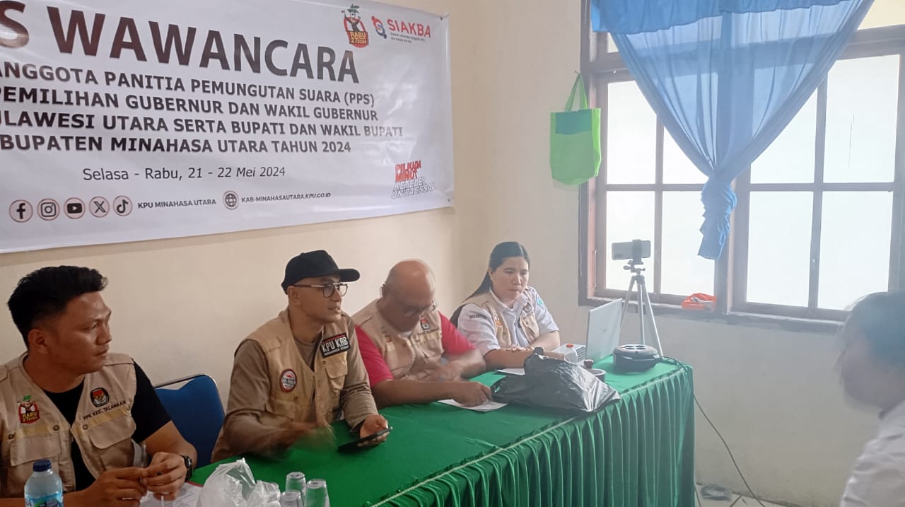 Narasione.com, Minut-Komisi Pemilihan Umum (KPU) Kabupaten Minahasa Utara (Minut) pekan lalu baru saja melantik Anggota PPK, kali ini penyelenggara menghelat tes wawancara bagi calon anggota Panitia Pemungutan Suara (PPS).