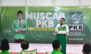 Minut, Narasione.com- Bupati Minahasa Utara, Dr. Joune Ganda, secara resmi membuka Musyawarah Cabang (Muscab) Partai Kebangkitan Bangsa (PKB) Kabupaten Minahasa Utara yang digelar di sebuah restoran di wilayah Minut, Senin (20/04/2026). Dalam kesempatan tersebut, Bupati memberikan apresiasi tinggi atas peran aktif kader PKB dalam mengawal pembangunan daerah.