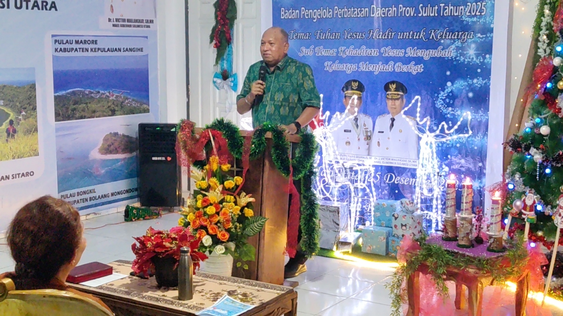 Ibadah Pra Natal Keluarga Besar BPPD Sulut ini mengangkat Tema ” Tuhan Yesus Hadir Untuk Keluarga” dengan Sub Tema : Kehadiran Yesus Mengubah Keluarga Menjadi Berkat, dipimpin oleh Pendeta Christian Paendong STH, yang mengambil bacaan dalam Kitab Dalam Yesaya 7 ayat 14 yang isinya; sebab itu Tuhan sendirilah yang akan memberikan kepadamu suatu pertanda: Sesungguhnya, seorang perempuan muda mengandung dan akan melahirkan seorang anak laki-laki, dan ia akan menamakan Dia Imanuel.