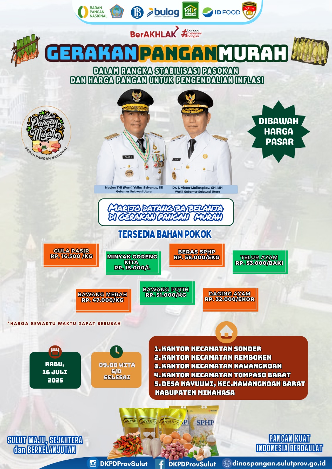 Manado, Narasione.com- Gerak cepat Pemerintah Provinsi Sulawesi Utara terkait Gerakan Pangan Murah (GPM) yang sudah di laksanakan di beberapa titik di kabupaten Minahasa Selatan dan Kota manado.