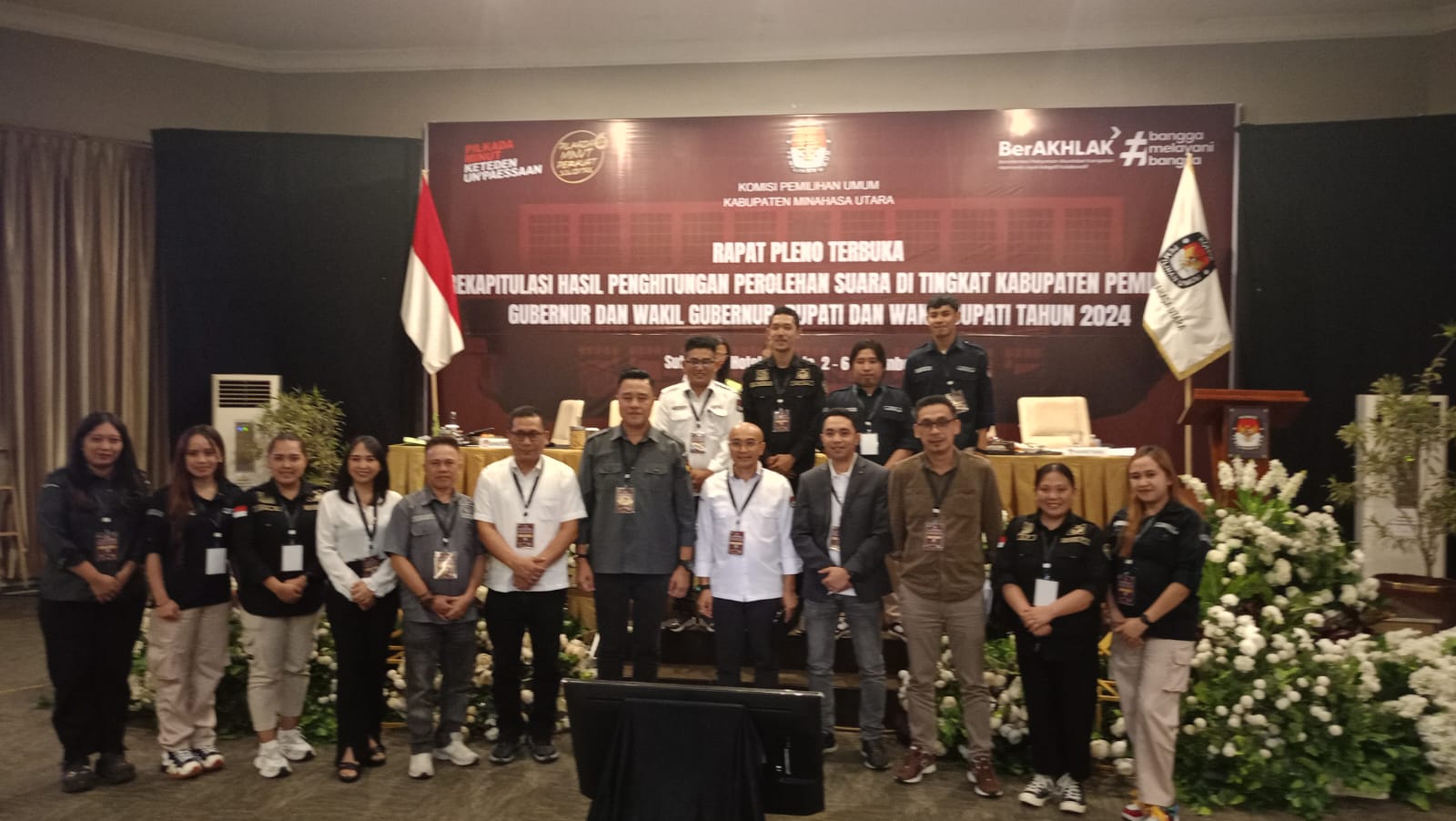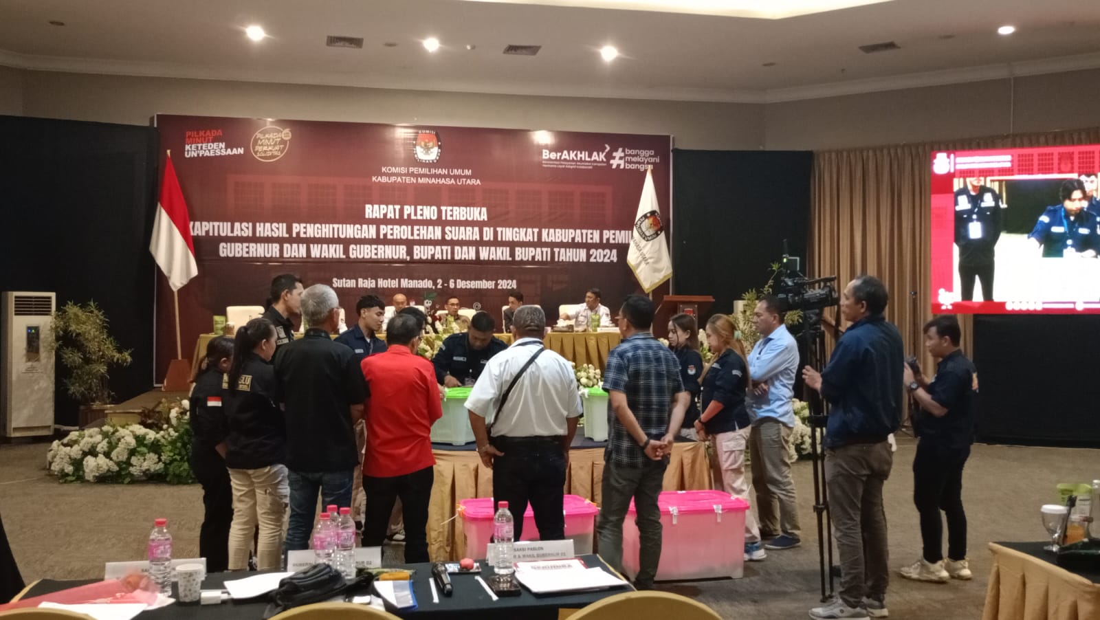 Narasione.com, Minut– Badan Pengawas Pemilihan Umum (Bawaslu) Kabupaten Minahasa Utara (Minut) mengawasi langsung Rapat Pleno Terbuka Rekapitulasi Hasil Penghitungan Perolehan Suara di Tingkat Kabupaten Minahasa Utara dalam Pemilu Tahun 2024. Kegiatan tersebut berlangsung di Sutan Raja hotel, dari 2-6 Desember 2024.