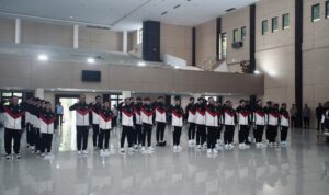Para atlet, pelatih, dan ofisial yang akan bertanding di PON Beladiri II Kudus Tahun 2025 di Graha Gubernuran Manado.