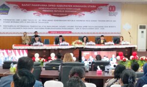 Minut, Narasione.com- Bupati Minahasa Utara Joune J E Ganda bersama Wakil Bupati Kevin William Lotulung (JG-KWL) menghadiri Rapat Paripurna Peringatan Hari Ulang Tahun Ke-80 Proklamasi Kemerdekaan Republik Indonesia Pada Sidang Tahunan MPR-RI dan Sidang Bersama DPR-RI dan DPD-RI Tahun 2025 Mendengarkan Pidato Kenegaraan Presiden Republik Indonesia, dan Penyampaian Keterangan Pemerintah Atas Rancangan Undang-Undang Tentang APBN Tahun Anggaran 2026 Beserta Nota Keuangannya Pada Rapat Paripurna Pembukaan Masa Persidangan I DPR-RI Tahun Sidang 2025-2026.