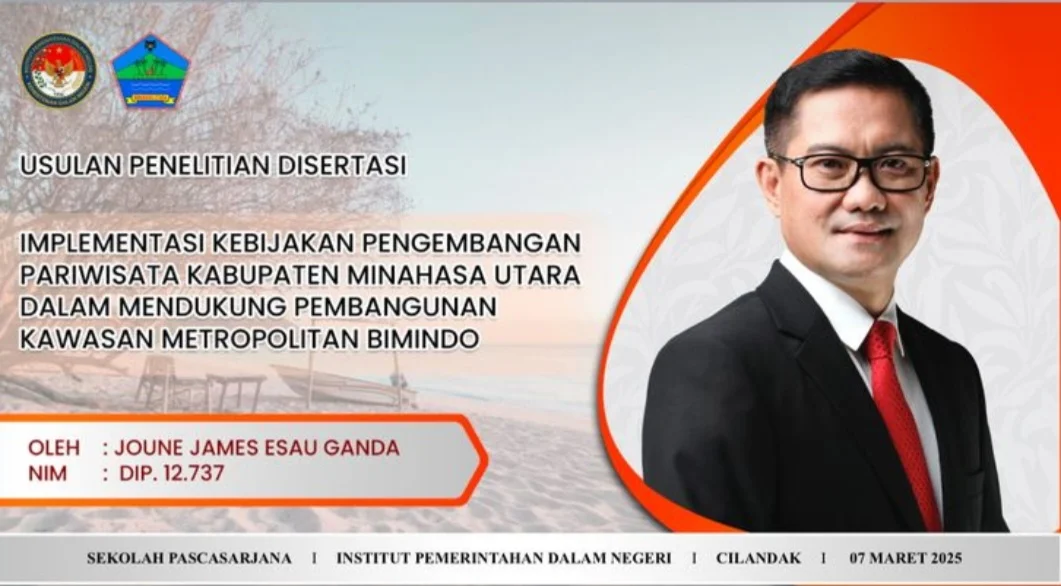 Diketahui, Joune Ganda sebagai mahasiswa pasca sarjanan IPDN dengan NIM : DIP 12.737 itu berhasil sebagai Kandidat Doktor setelah berhasil mempertahankan Usulan penelitian Disertasi “Implementasi Kebijakan Pembangunan Kabupaten Minahasa Utara Dalam mendukung Pembangunan Kawasan Metropolitan BIMINDO”.