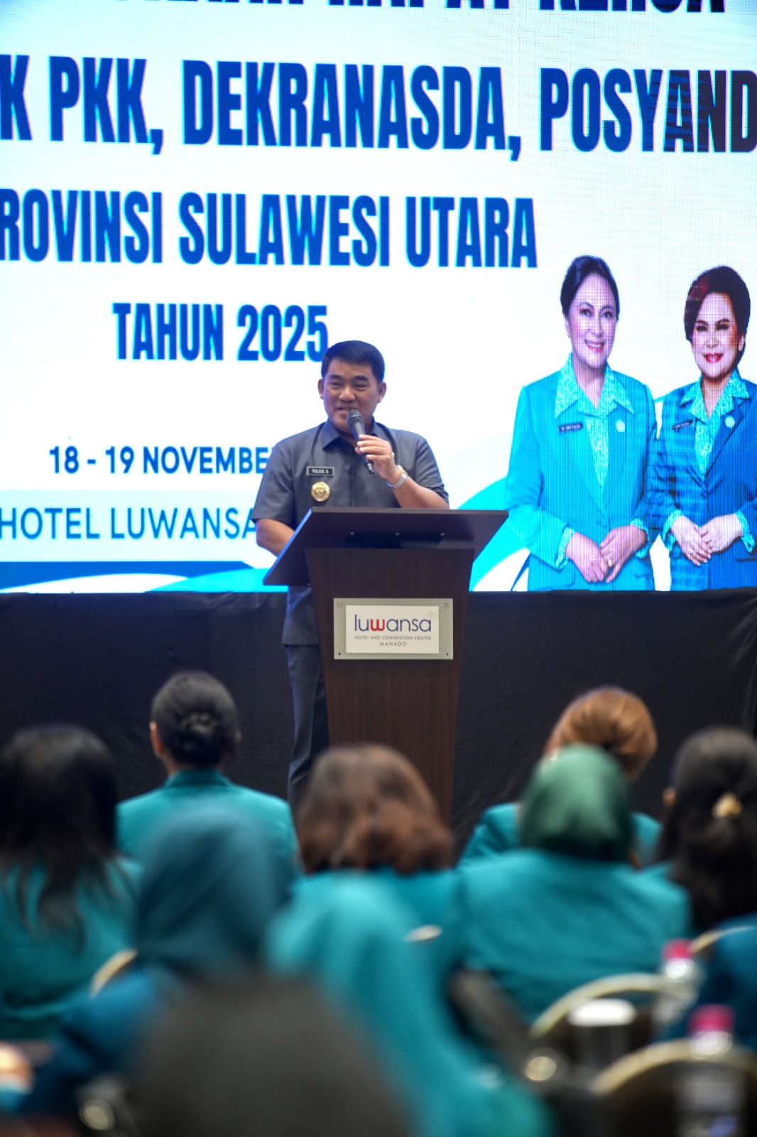 Buktinya, orang nomor satu di Sulut ini, membuka secara resmi Rapat Kerja TPP PKK, Dekranasda, dan Posyandu se-Sulut, Selasa (18/11) yang berpusat di Hotel Luwansa Manado.