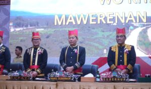 Minut, Narasione.com- Gubernur Sulawesi Utara Mayjen TNI (Purn) Yulius Selvanus SE bersama Wakil Gubernur Dr Victor Mailangkay, Kamis (20/11/2025) menghadiri Rapat Paripurna peringatan Hari Ulang Tahun Kabupaten Minahasa Utara ke-22 yang digelar Dewan Perwakilan Rakyat Daerah (DPRD) Kabupaten Minahasa Utara di Hotel Sutan Raja Minahasa Utara.